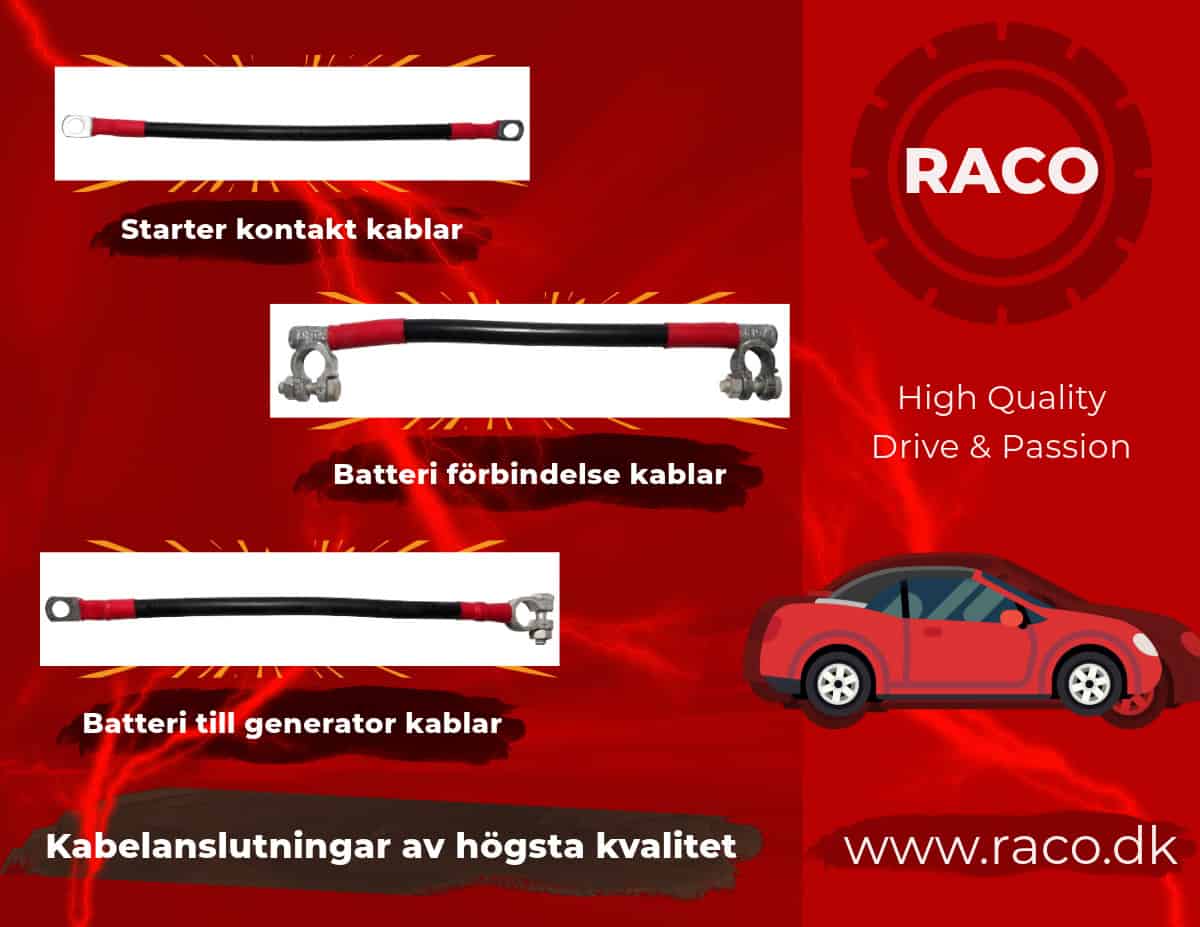 RACO har et bredt udvalg af Start Kabler af højeste kvalitet og i mange længder. Tængerne er udført i helstøbt messing som giver en lang levetid og stabil forbindelse.